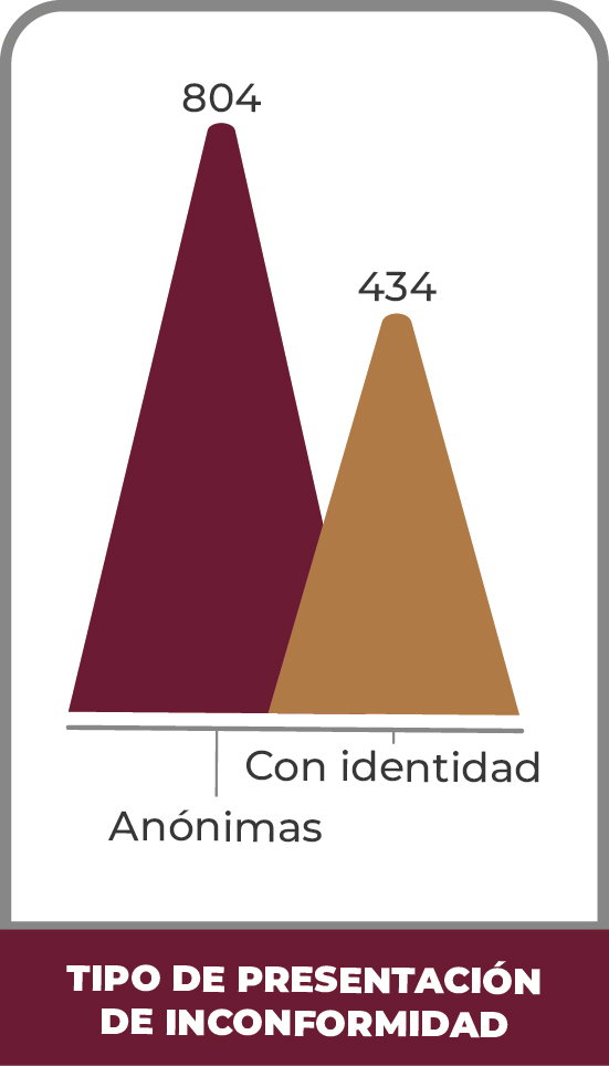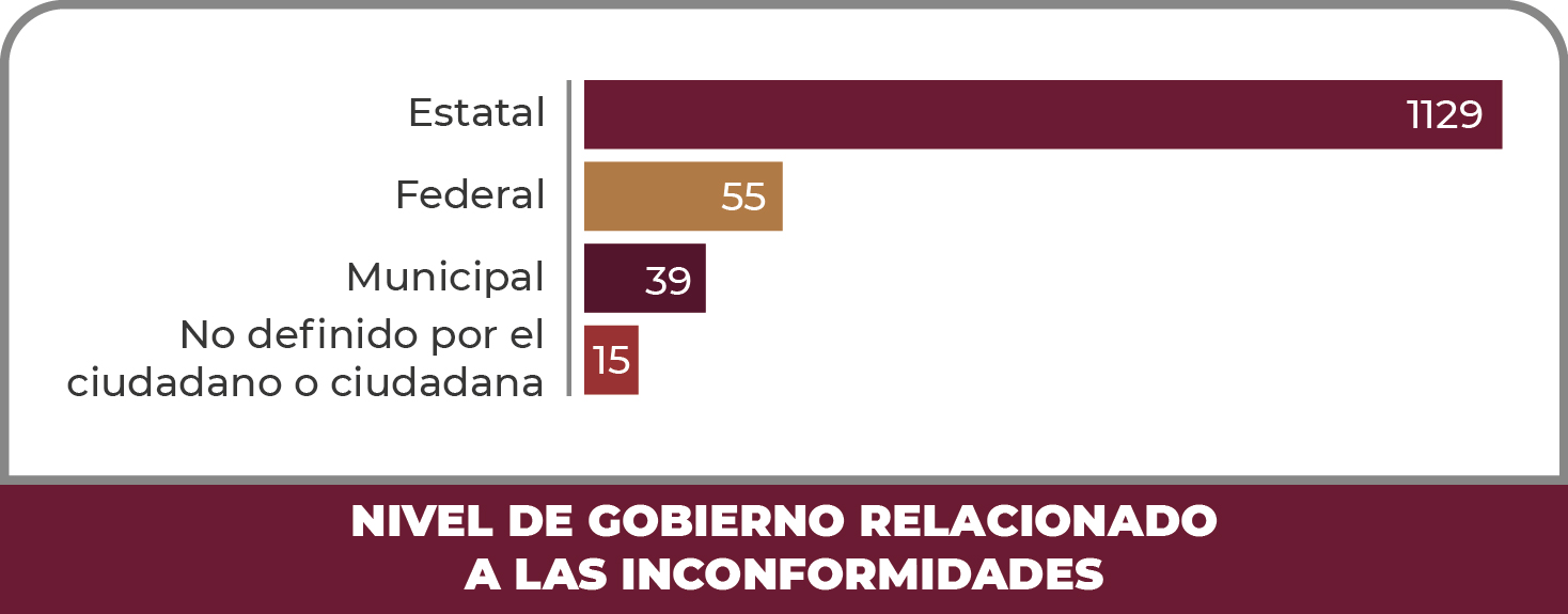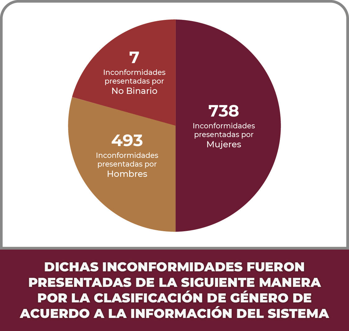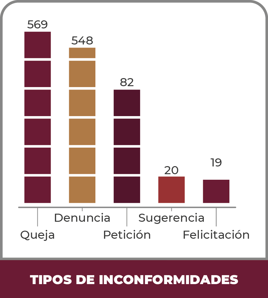 Se registraron a través del “Sistema de Atención a Quejas y Denuncias” un total de un mil 238 inconformidades durante el periodo comprendido del 01 de noviembre al 31 de agosto de 2023, de las cuales se desglosan de la siguiente manera: