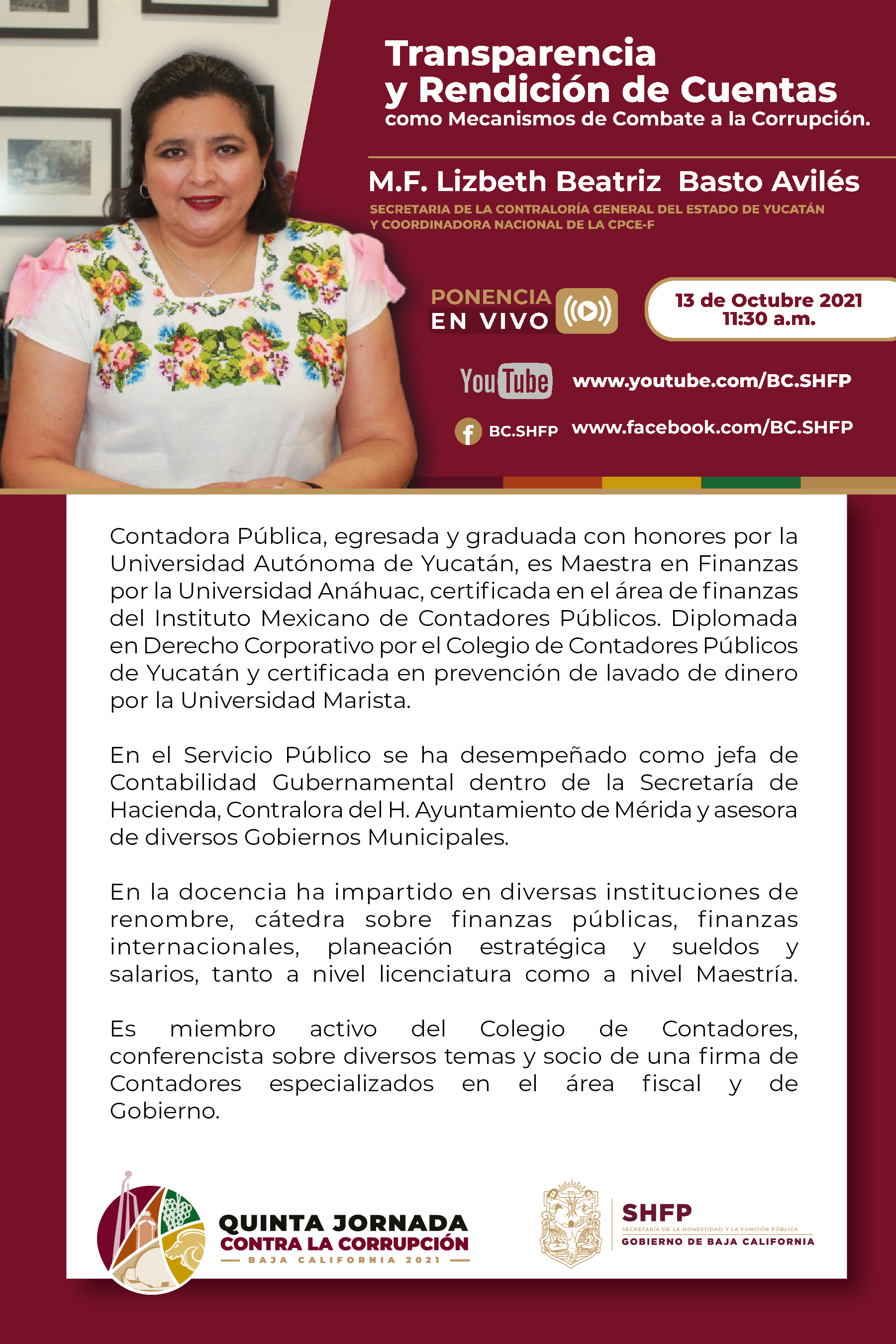 Lizbeth Beatriz Basto Avilés - Secretaría de la Contraloría General del Estado de Yucatán y Coordinadora Nacional de la CPCE-F